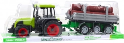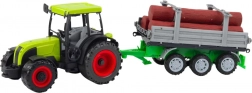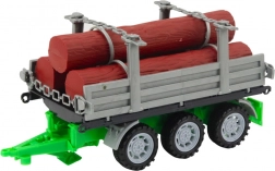 Traktor z przyczepą i kłodami tworzą kompletny zestaw. Łatwe podłączanie dzięki zaczepowi holowniczemu i płynnie toczącym się kołom.