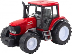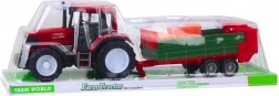 Duży czerwony traktor z zieloną przyczepą i belami siana dla realistycznej zabawy w farmę. Dzięki napędowi na inercję (popychany jeździ dalej) oraz wytrzymałemu plastikowi zapewnia długotrwałą, bezpieczną zabawę i wspiera kreatywność oraz wyobraźnię dzieci.