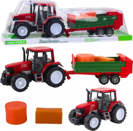 Traktor z przyczepą i belami siana, czerwony, 62 cm