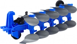 Niebieski pług z kilkoma ostrzami umożliwia dzieciom naśladowanie orki i innych prac rolniczych.
