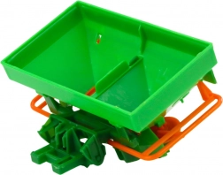 Zielony siewnik uzupełnia traktor i dodaje funkcjonalny element, dzięki któremu dzieci łatwo odwzorują pracę prawdziwych maszyn rolniczych.