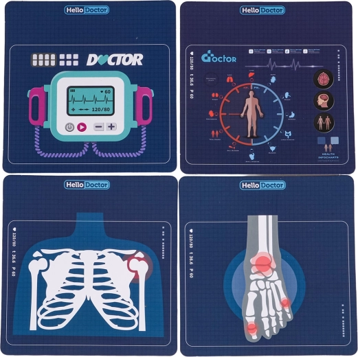 Uderzenia serca, pomiar temperatury, dźwięk tomografu oraz alarm. Podświetlone serduszko na ekranie i wymienne zdjęcia EKG/tomografii dla jeszcze bardziej realistycznej zabawy.