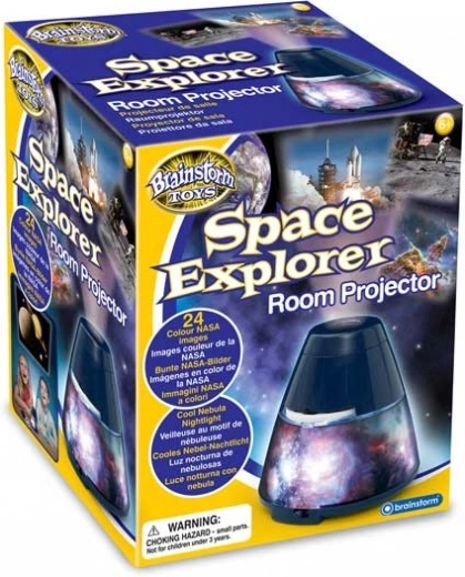 Odkrywaj kosmos prosto z domu z projektorem Brainstorm. Oferuje 24 kolorowych slajdów statków kosmicznych, astronautów, planet i mgławic na 3 wymiennych dyskach z autentycznymi ujęciami z NASA i teleskopu Hubble’a. Łatwa obsługa, projekcja do szerokości 1 m na sufit lub ścianę oraz możliwość przełączenia w tryb lampki nocnej z efektem mgławicy.