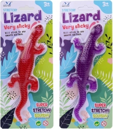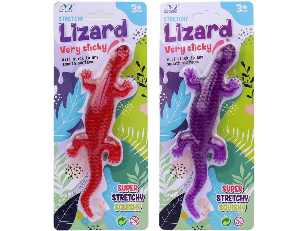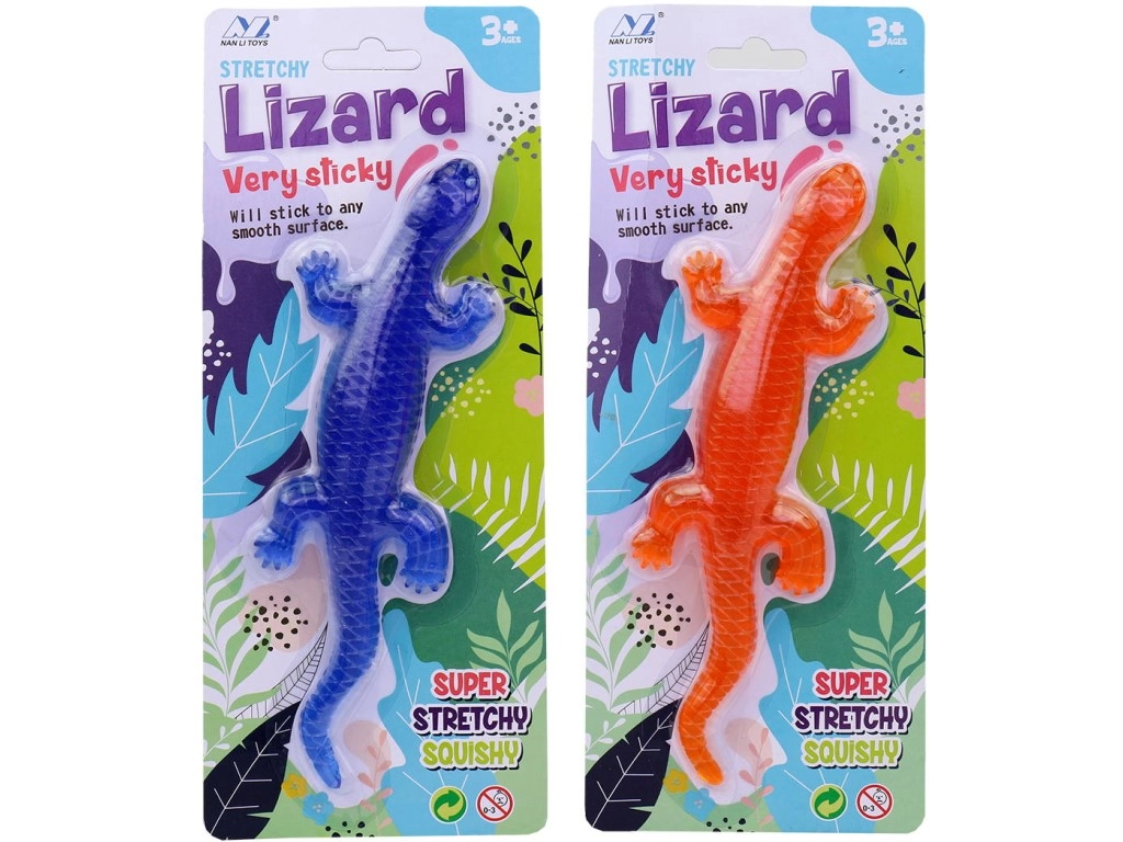 Zabawna lepka jaszczurka o wymiarach 19,5 × 6 cm dla dzieci od 3 lat. Miękki plastikowy materiał łatwo przyczepia się do gładkich powierzchni i zapewnia mnóstwo zabawy w domu i w podróży. Dostarczana w blistrze.
