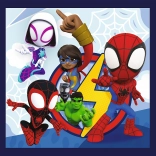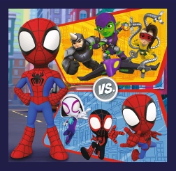 Zestaw dziecięcych puzzli 3w1 z motywami Spidey’ego, pająków i dinozaurów oferuje trzy obrazki o 20, 36 i 50 elementach. Świetny do rozwijania logiki, cierpliwości i motoryki małej. Każdy ułożony obrazek ma wymiary ok. 20 × 19,5 cm.