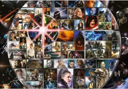Odkryj najsłynniejszych bohaterów i złoczyńców ze świata STAR WARS w ogromnym zestawie puzzli TREFL UFT. Dziewięć oddzielnie pakowanych obrazów (każdy po 1 500 elementów) możesz układać pojedynczo lub dzięki UFT – Unlimited Fit Technology połączyć w jedną wielką kompozycję dokładnie według własnej wyobraźni. W zestawie znajduje się także papierowy wzór ułatwiający rozmieszczenie motywów.