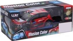 Zabawny i żwawy samochód RC z efektami świetlnymi ucieszy małych i dużych fanów wyścigów. Oferuje prędkość do 10 km/h, zasięg sterowania do 20 m oraz niezawodne sterowanie na częstotliwości 27 MHz. Kompaktowe wymiary i świecąca powierzchnia karoserii gwarantują atrakcyjne wrażenia w domu i na zewnątrz.