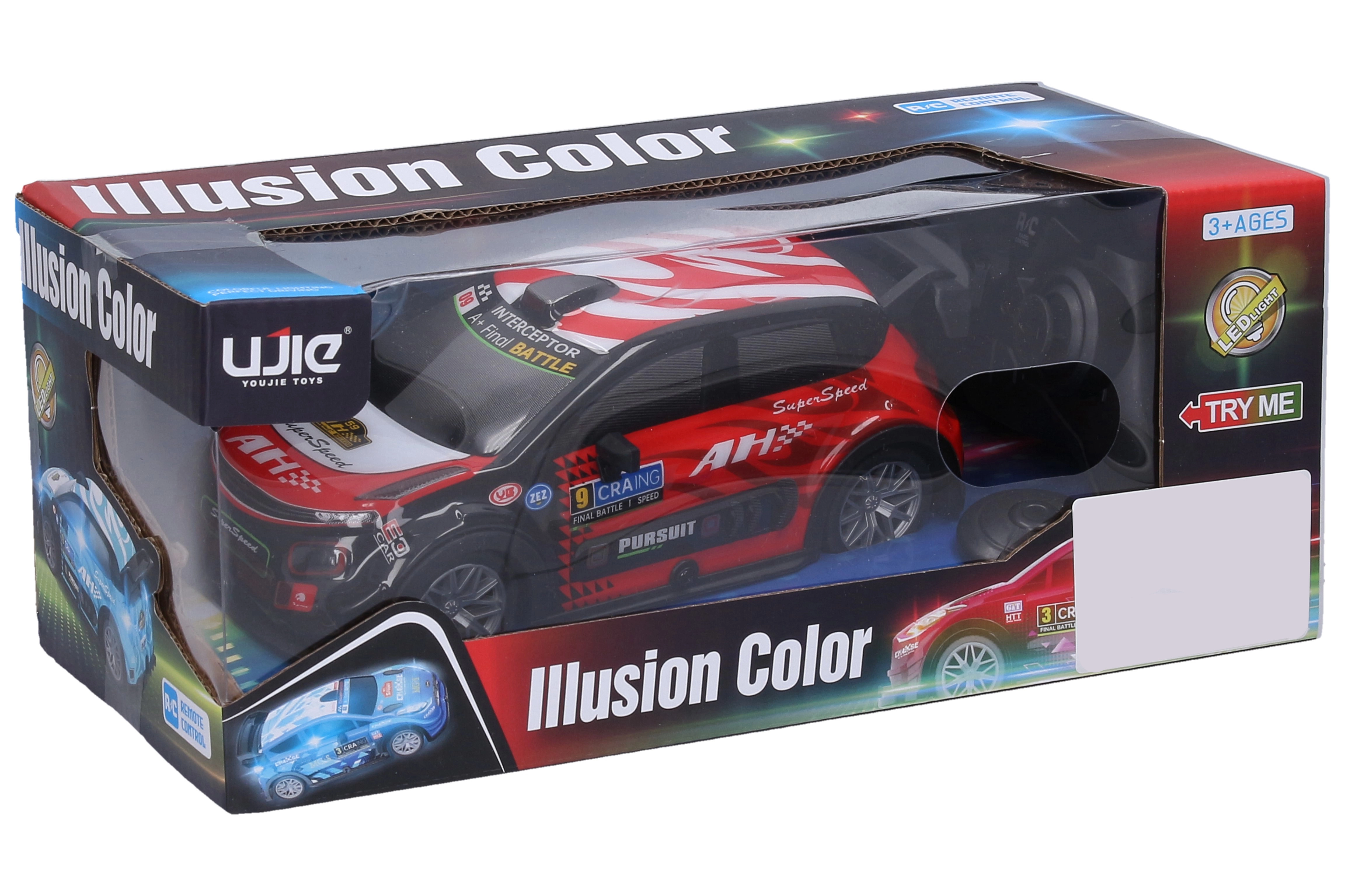 Ciesz się dynamiczną jazdą z tym świecącym autem RC, które wyróżnia się atrakcyjnymi efektami świetlnymi i prostą obsługą. Dzięki zasięgowi do 20 metrów i prędkości do 10 km/h jest idealne do domowych wyścigów i mniejszych przestrzeni na zewnątrz. Przejrzysty przełącznik ON/OFF na spodzie auta oraz łatwe przygotowanie do jazdy zadowolą początkujących i zaawansowanych.