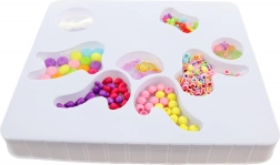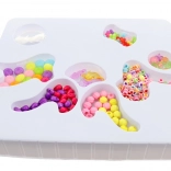Pudełko jest przejrzyste i praktyczne do przechowywania, dzięki czemu koraliki łatwo sortować i przenosić. Dzięki różnym kształtom i kolorom dzieci tworzą bransoletki, naszyjniki i inne oryginalne dodatki.