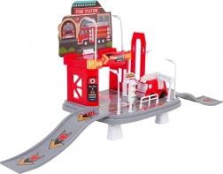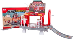 Podwyższona podstawa, dwa poziomy z miejscami parkingowymi oraz ręcznie sterowana winda dla płynnego przemieszczania autka między poziomami. Idealne do odgrywania akcyjnych scen ratunkowych.