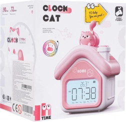 dziecięcy budzik koci domek z nocnym światłem i wyświetlaczem