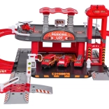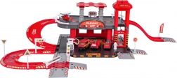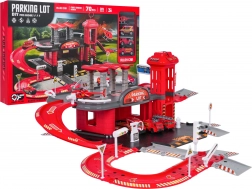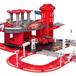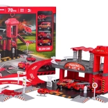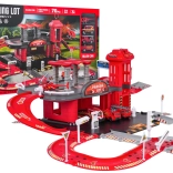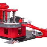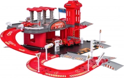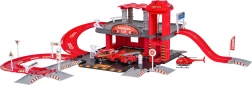 Ten szczegółowo wykonany zestaw strażackiej stacji łączy zabawę z rozwojem umiejętności. Dzieci mogą tankować na stacji benzynowej, jeździć po drogach, wwieźć pojazd ręczną windą na piętro i parkować na wyznaczonych miejscach. Z górnego poziomu pojazdy wracają windą lub pędzą w dół po spiralnej rampie.