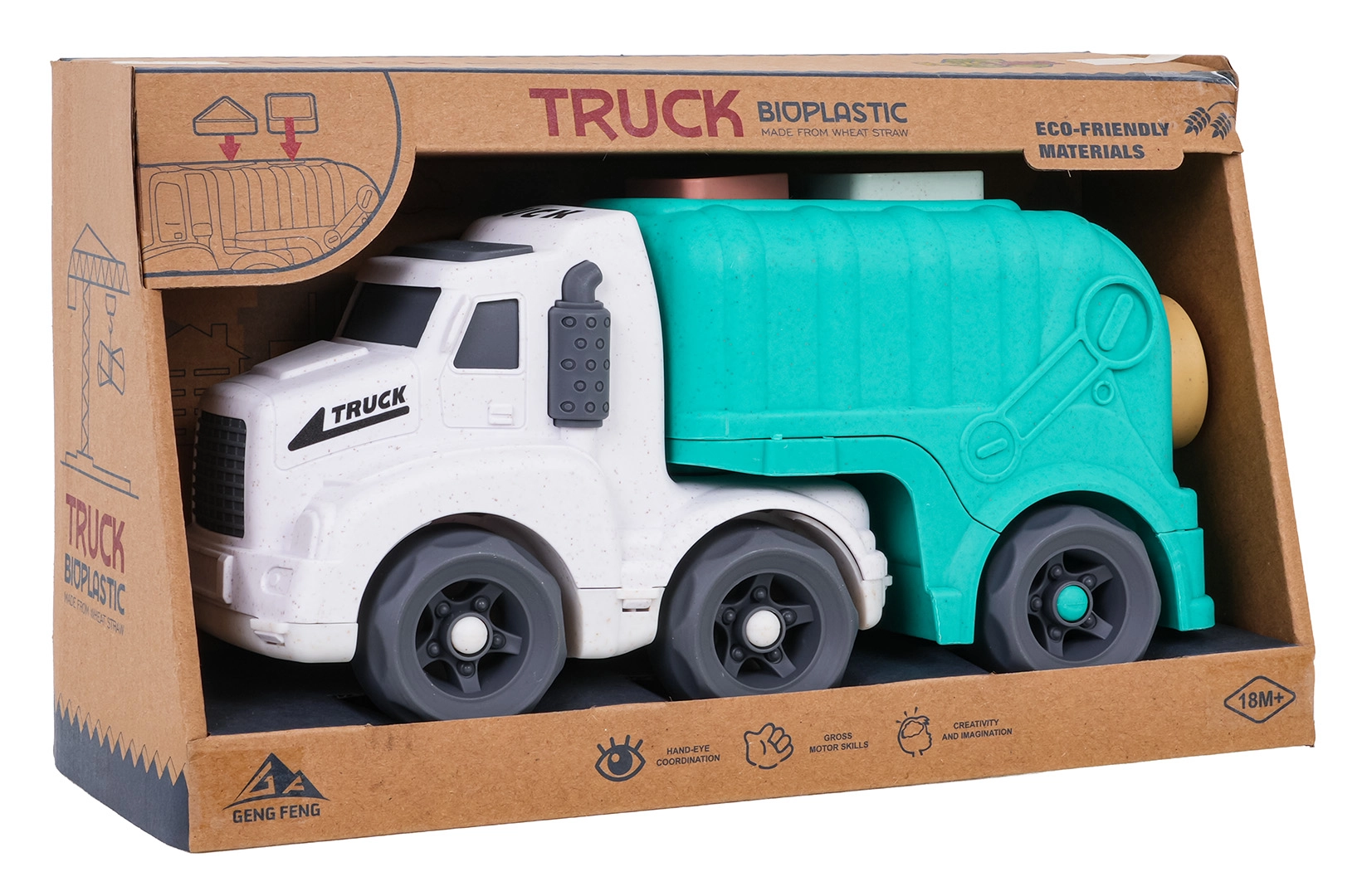 Odkryj zabawną i zrównoważoną zabawkę dla najmłodszych – śmieciarkę wykonaną z wysokiej jakości bioplastiku. Dzięki sortownikowi na dachu i tylnej klapie dzieci ćwiczą rozpoznawanie kształtów i kolorów, a jeżdżące kółka zachęcają do ruchowej, kreatywnej zabawy. Otwierana tylna klapa umożliwia szybki dostęp do klocków i łatwe powtarzanie zabawy.