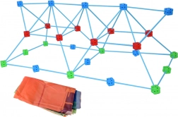 - Patyczki: jasnoniebieskie; łączniki: czerwone, zielone, niebieskie
