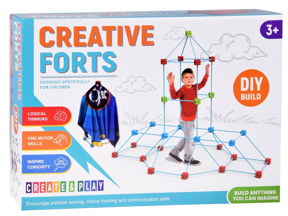 Odkryj nieskończoną zabawę z tym dużym zestawem konstrukcyjnych słomek i klocków! Dzieci z łatwością zbudują fort, domek, wieżę, igloo oraz własną tajną bazę. Lekkie patyczki i solidne, wielootworowe łączniki gwarantują stabilne konstrukcje, a płachta z nadrukiem zamieni szkielet w przytulny namiot. Siatkowy woreczek ułatwi przechowywanie. Idealne do rozwijania kreatywności, myślenia przestrzennego i motoryki małej.