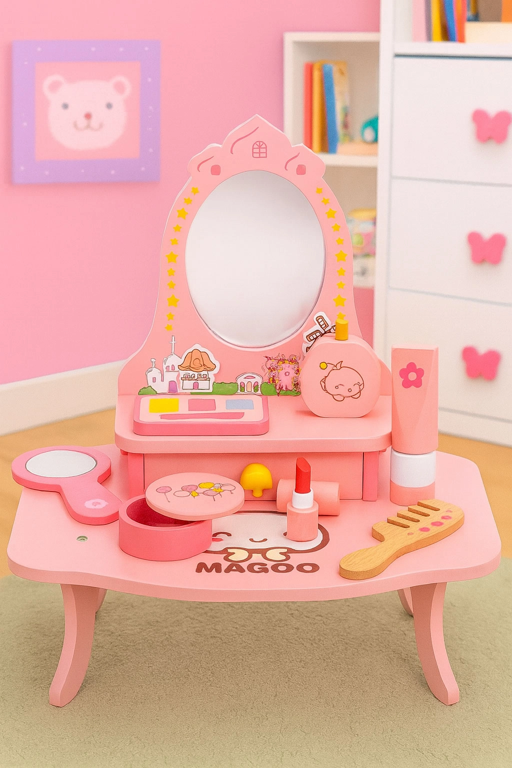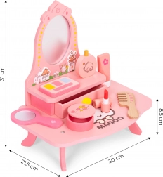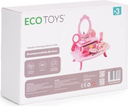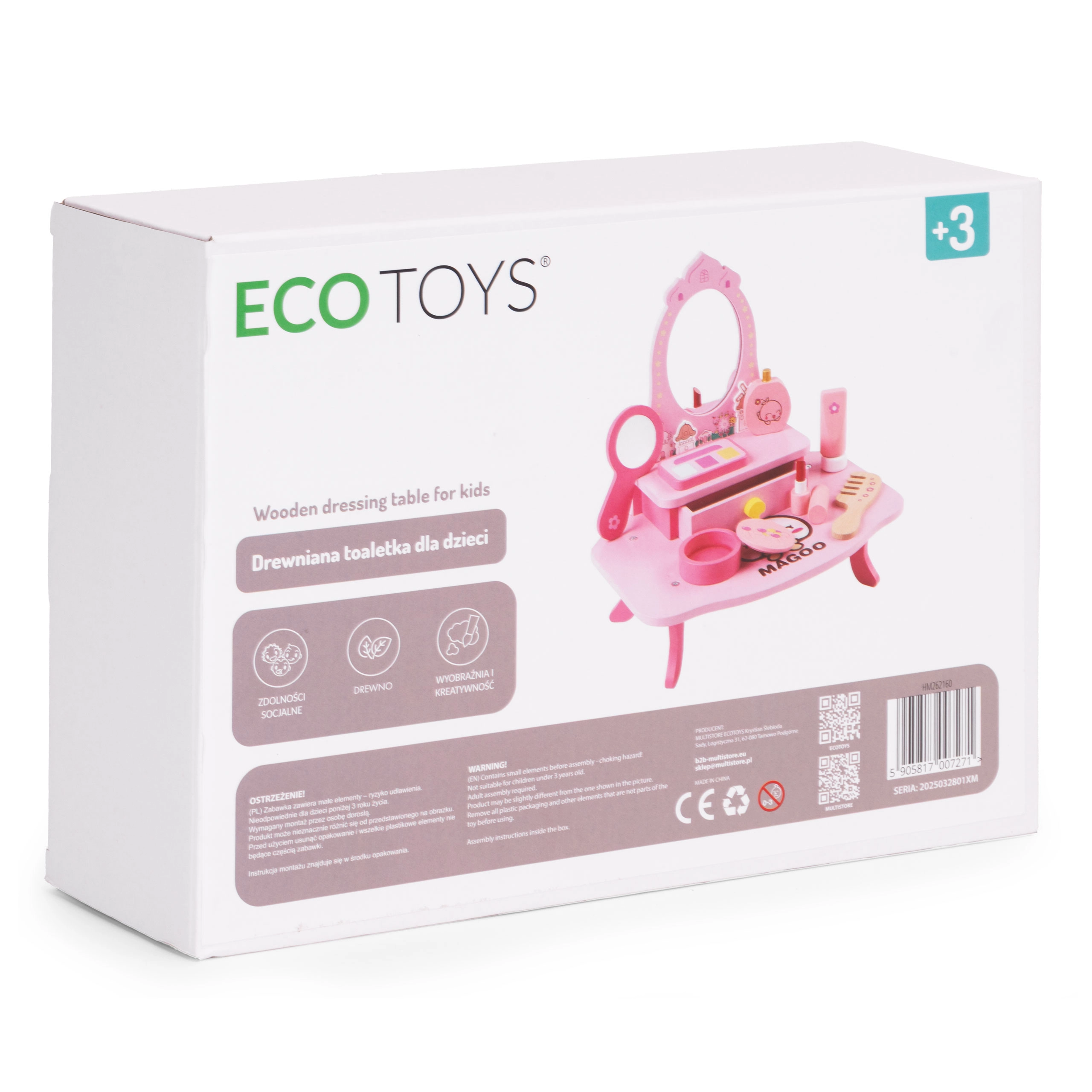 Podaruj dziecku własny kreatywny kącik – toaletka ECOTOYS w delikatnym różowym kolorze pięknie wkomponuje się w pokój dziecięcy i zachęci do zabawy w odgrywanie ról. Dzieci bezpiecznie ćwiczą codzienne rytuały, uczą się utrzymywać porządek dzięki szufladzie, a jednocześnie rozwijają sprawność manualną i pewność siebie.