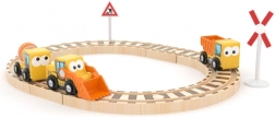 Odkryj zabawny drewniany zestaw do zabawy z torem kolejowym i maszynami budowlanymi, który wspiera wyobraźnię, motorykę małą oraz kreatywną zabawę. Wykonany z ekologicznie zrównoważonego drewna bez chemikaliów. Idealny dla dzieci od 18 miesięcy.