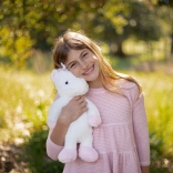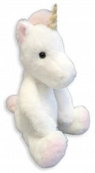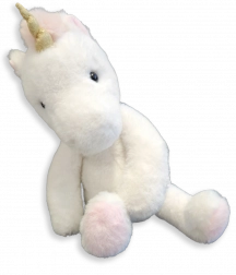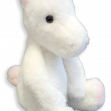 Ten biały pluszowy jednorożec stanie się najlepszym przytulnym przyjacielem dla małych marzycieli. Ma puszyste futerko, delikatne różowe łapki i uszka, błyszczący róg oraz uroczy siedzący kształt – wszystko, co czyni jednorożca naprawdę magicznym towarzyszem.
