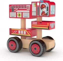 Odkryj świat ratowników z tą piękną drewnianą układanką w kształcie wozu strażackiego. Zabawka wykonana jest z wysokiej jakości naturalnego materiału, jest bezpieczna i trwała. Wspiera rozwój motoryki małej, logicznego myślenia oraz koordynacji oko–ręka. Kolorowe elementy łatwo pasują na swoje miejsce, a dzieci w naturalny sposób uczą się rozpoznawać kształty, kolory i środki transportu.