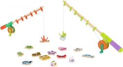 - Magnetyczna wędka, zestaw drewnianych rybek