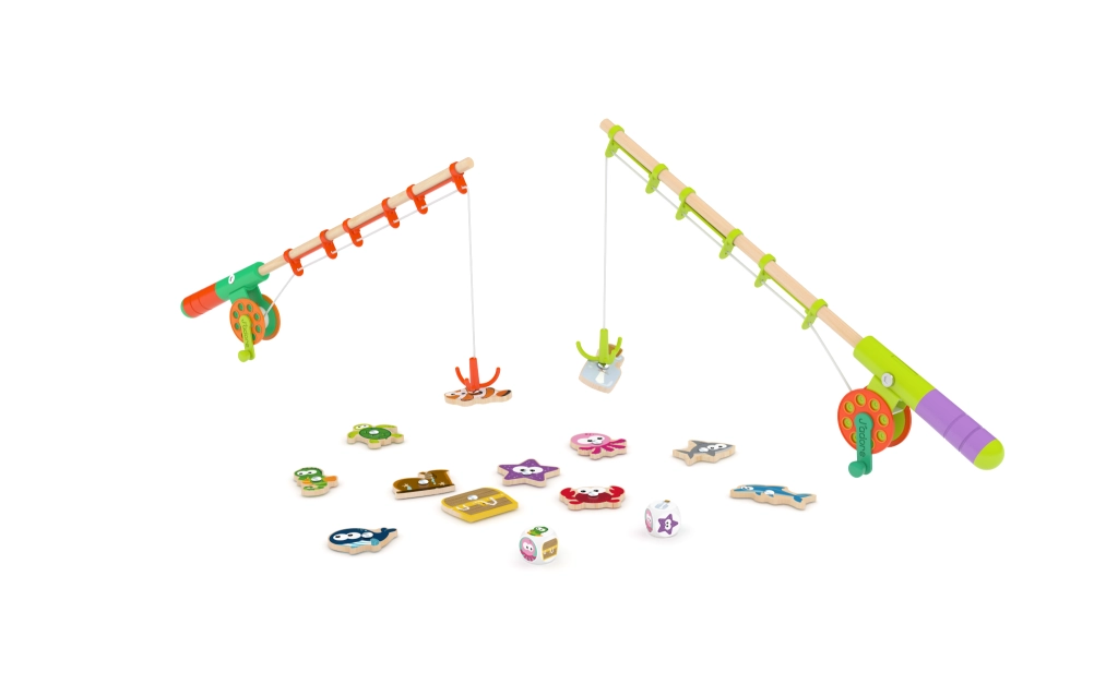 Złap swoją pierwszą rybkę! Ta drewniana magnetyczna gra dostarcza dzieciom mnóstwo zabawy i jednocześnie nauki. Za pomocą magnetycznej wędki łowią kolorowe rybki, trenując przy tym małą motorykę, koordynację ręka–oko, koncentrację i cierpliwość. Bezpiecznie zaokrąglone elementy z wysokiej jakości drewna oraz nietoksyczne farby zapewniają bezpieczną zabawę w domu, w przedszkolu i w podróży.