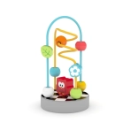 Ta sprytna zabawka w przenośnym formacie zajmie dzieci w domu i w podróży. Dzięki naturalnemu drewnu i zaokrąglonym krawędziom labirynt jest bezpieczny dla dzieci i przyjemny w dotyku. Dzieci, przechylając lub korzystając z prowadzącego patyczka, pokonują labirynt, rozwijając koncentrację i koordynację oko–ręka.