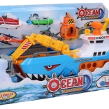 Zestaw do zabawy Łódź do połowu rekinów dostarcza dzieciom emocjonujących wrażeń na wodzie. Dzięki tematycznym akcesoriom mogą tworzyć własne opowieści o eksploracji oceanu i odważnym połowie rekinów.