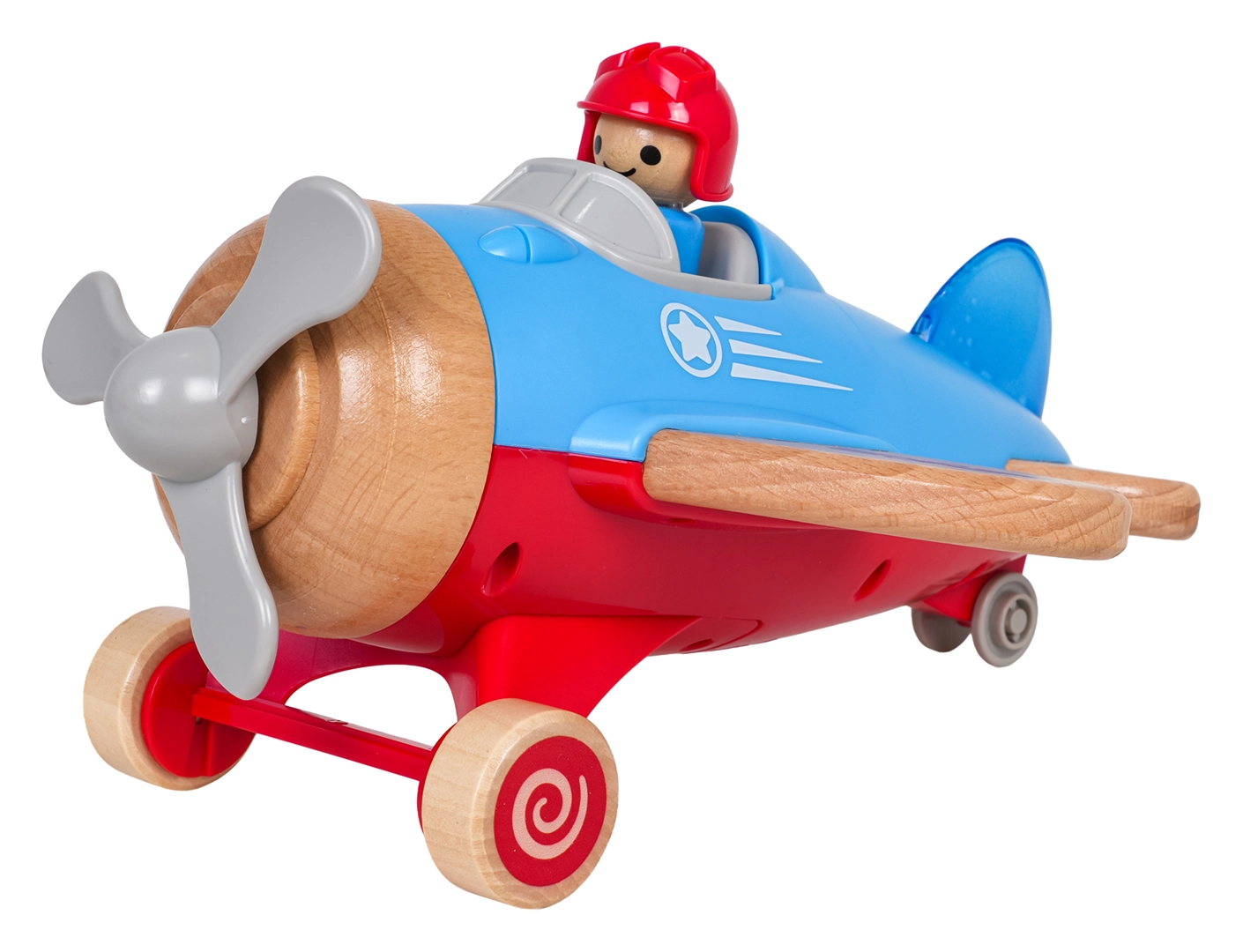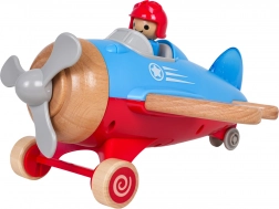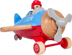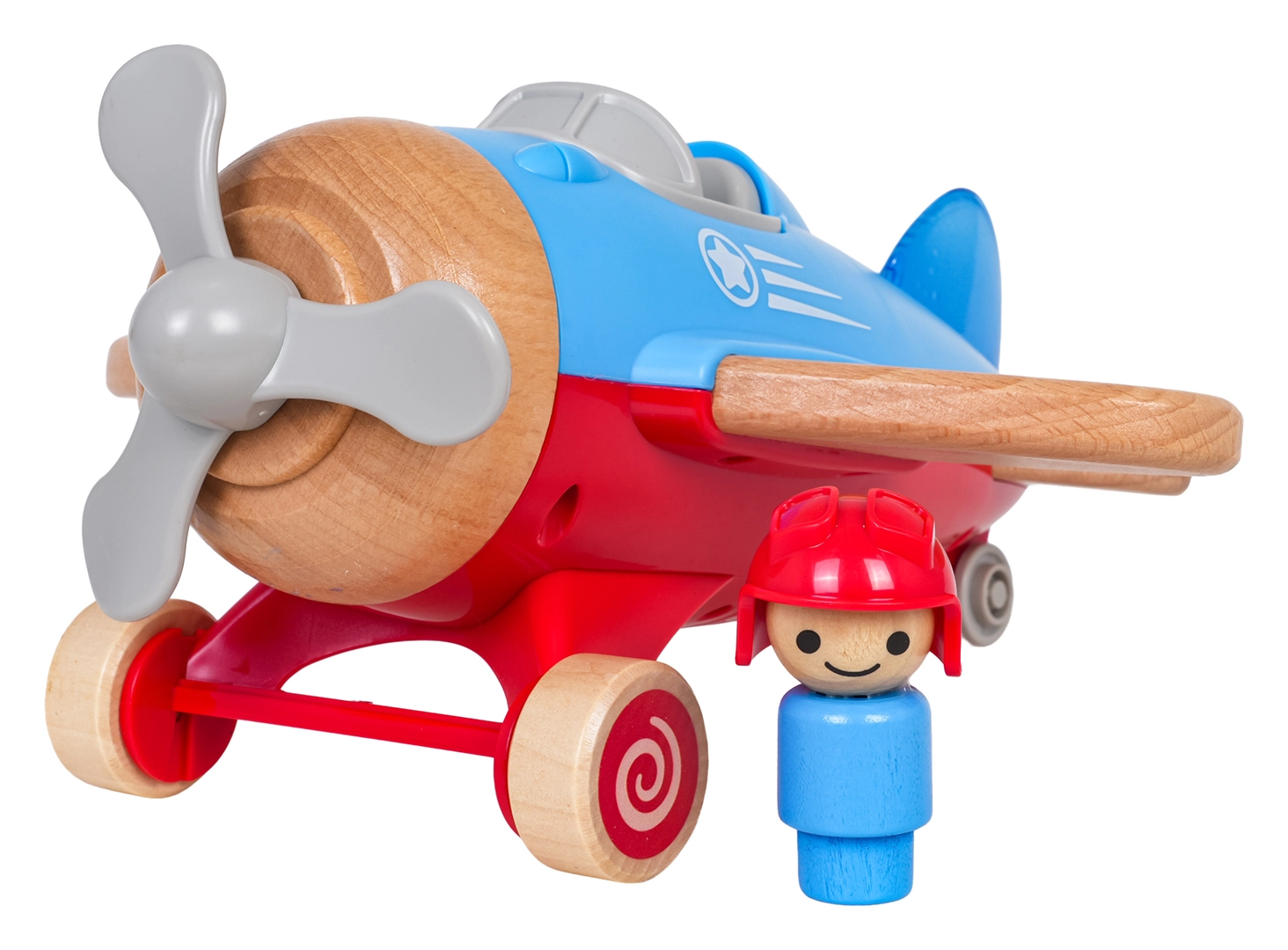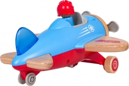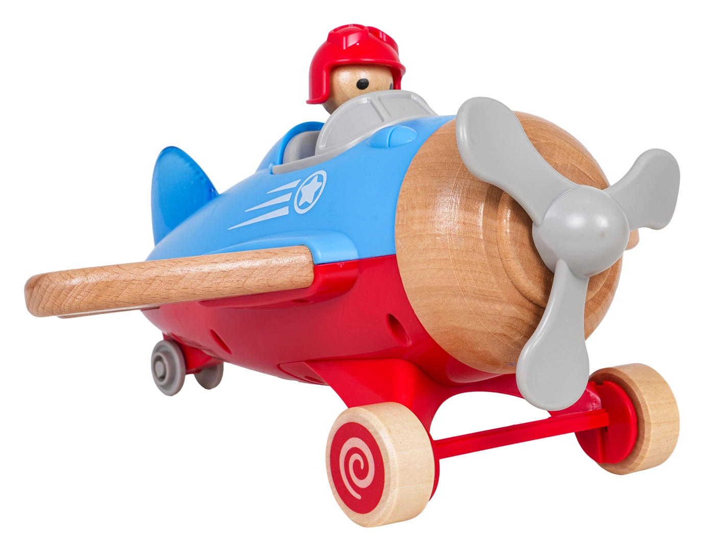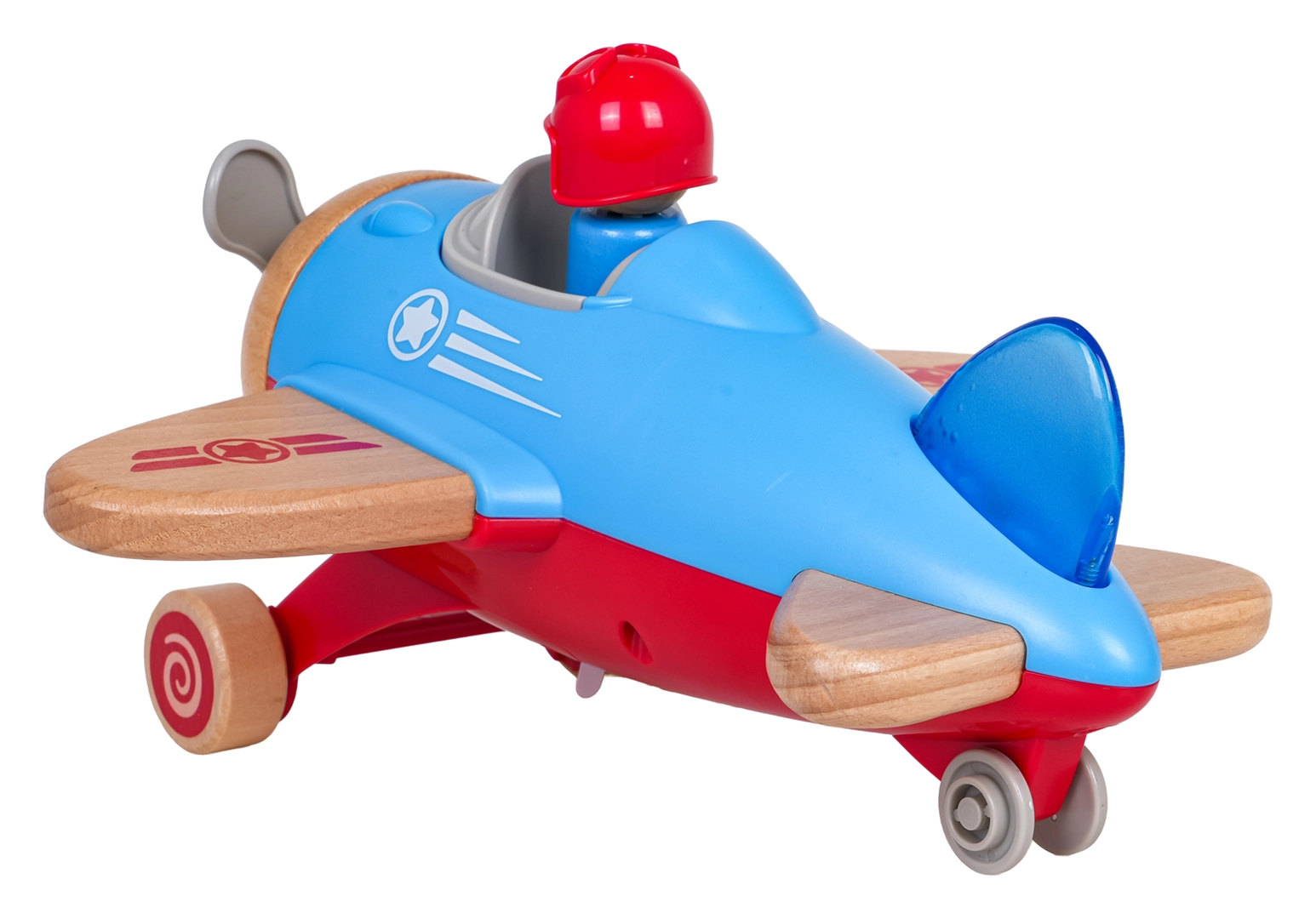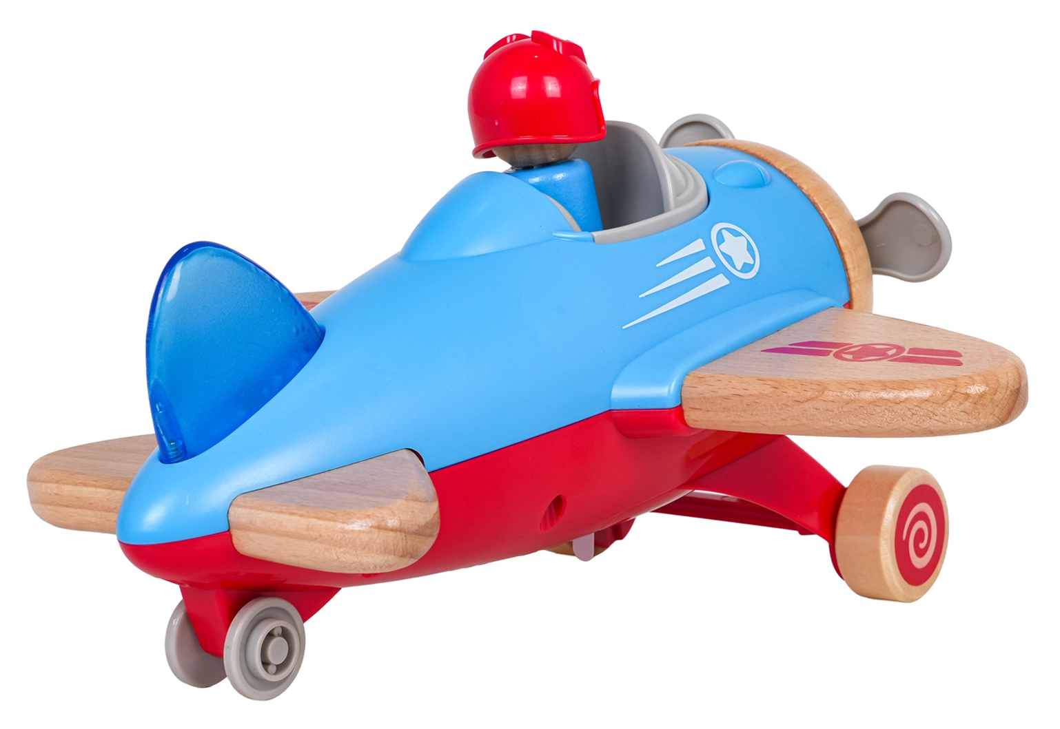 Ten kolorowy samolot z uroczym pilotem wspiera wyobraźnię i rozwój małej motoryki. Po naciśnięciu figurki pilota zapala się tylne skrzydło i rozbrzmiewają melodie oraz realistyczne dźwięki startu. Solidne połączenie drewna i plastiku zapewnia długą żywotność i przyjemne odczucia w dotyku.