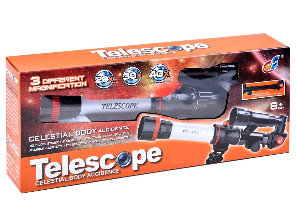 - teleskop, 3× okular, pryzmat diagonalny, mini kompas, statyw