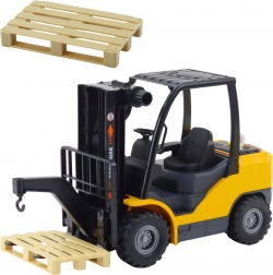 Praktyczne ruchome, regulowane na wysokość widły umożliwiają łatwe podnoszenie i opuszczanie ładunków. W zestawie znajduje się także paleta, więc dziecko może ćwiczyć załadunek i rozładunek jak w prawdziwym magazynie. Zabawa rozwija małą motorykę, koordynację ruchową oraz wyobraźnię.