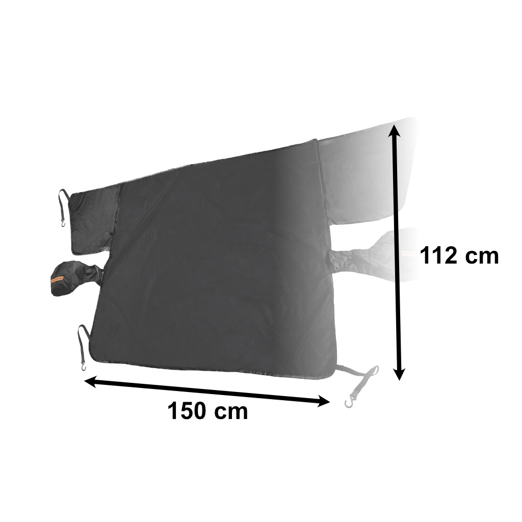 - Uniwersalny rozmiar – pokrywa przednią szybę oraz części boczne.