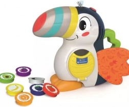 Interaktywny tukan Adrian od CLEMENTONI BABY to świetny towarzysz pierwszego odkrywania świata. Po włożeniu żetonu do dzioba tukan natychmiast reaguje – rozświetla dziób kolorem włożonego owocu, rozpoznaje żeton i głośno go nazywa. Dzieci w naturalny sposób rozumieją przyczynę i skutek, ucząc się kolorów i nazw owoców w formie zabawy.