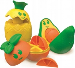 Ten kreatywny zestaw z trzema rodzajami owoców został zaprojektowany dla małych odkrywców. Każdy owoc zapewnia inny sposób zabawy: awokado otwiera się i skrywa w środku wyjmowaną kuleczkę, części ananasa można układać jedna na drugiej, a pomarańcza dzieli się na 4 części, które dzieci ponownie składają. Dzięki zróżnicowanym fakturom i kształtom zabawka dostarcza różnorodnych bodźców sensorycznych.