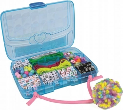 Odkryj radość tworzenia bransoletek, które wyrażą Twój styl. Dzięki elastycznym sznurkom oraz bogatej ofercie koralików i liter łatwo ułożysz osobiste wiadomości, imiona i zabawne slogany. Praktyczny przenośny organizer z przegródkami utrzyma wszystko przejrzyście na swoim miejscu – idealny w podróży i do domowego tworzenia.