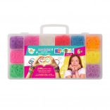 Twórz własne kolorowe bransoletki, pierścionki i ozdoby dzięki temu kompletnemu kreatywnemu zestawowi. Zawiera krosno, kolorowe gumki oraz praktyczny organizer, dzięki czemu wszystko jest pod ręką i gotowe do tworzenia. Zestaw wspiera kreatywność, motorykę małą oraz łączenie kolorów i wzorów. Dzięki plastikowemu pudełku z przegródkami jest idealny także w podróży.
