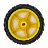 Uniwersalne plastikowe koło z czarną gumową oponą o średnicy 65 mm do zestawów robotycznych i pojazdów RC. Idealne dla robotów Arduino, line followerów oraz robotów omijających przeszkody. Zapewnia dobrą trakcję i pewny ruch na kostce, podłodze i w lekkim terenie.