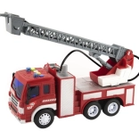 Spraw swoim dzieciom wóz strażacki z realistycznymi funkcjami! Auto jeździ na napędzie ciernym, wydaje dźwięki i miga. Dodatkowo dzięki wysuwanej drabinie i możliwości pryskania wodą zabawa w strażaków jest jeszcze bardziej autentyczna. Długość pojazdu to 30 cm, co jest idealne do zabawy i przechowywania.