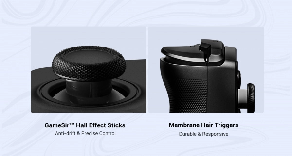 Lekki i wydajny GameSir X5 Lite (ok. 135 g) wynosi mobilne granie na wyższy poziom. Bezpośrednie połączenie przewodowe przez USB‑C zapewnia praktycznie zerowe opóźnienie, dzięki czemu każda akcja jest precyzyjna i natychmiastowa. Analogowe gałki z efektem Halla oferują płynny zakres 360°, wysoką trwałość i stałą precyzję bez dryfu.