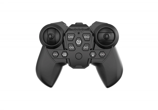 Ergonomiczny kontroler z dwoma drążkami i dedykowanymi przyciskami do świateł, dźwięków oraz trybu demo zapewnia precyzyjne i intuicyjne sterowanie.