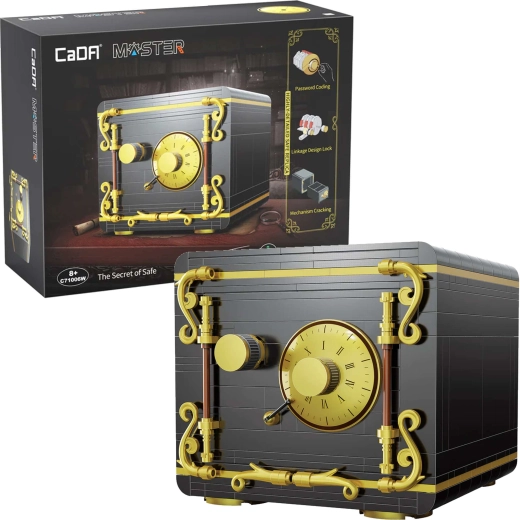 Z klockami CADA Master w domu zbudujesz stylowy sejf z obrotowymi pokrętłami i szyfrowaniem, który zachwyca dopracowanymi detalami i solidną konstrukcją. Dzięki przejrzystej instrukcji model z pomocą osoby dorosłej złożą także młodsi konstruktorzy.