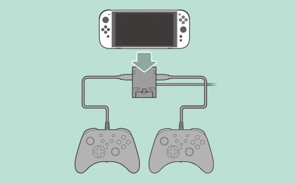 - Dwa porty USB-A – podłącz przewodowe kontrolery HORI, klawiaturę lub inne akcesoria USB.