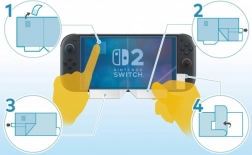 Montaż jest prosty dzięki opatentowanemu 3‑krokowemu systemowi HORI, który minimalizuje pęcherzyki powietrza i zapewnia czyste przyleganie. Precyzyjne wycięcia uwzględniają czujniki i kamerę, a folia nie dodaje zbędnych refleksów ani nie pogarsza optyki. Oficjalna licencja NINTENDO potwierdza wysoki standard jakości i bezproblemową kompatybilność.