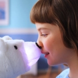 Kolory światła reprezentują emocje: niebieski oznacza chłód i radość, zielony senność/sen, a czerwony zbyt wielkie gorąco – wtedy pora użyć magicznej kostki lodu. Delikatnie przesuń nią po główce misia i zobacz, jak nosek czarująco się rozświetla, a miś się „ochładza”.
