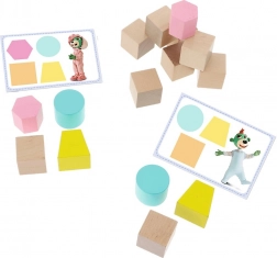 Edukacyjny drewniany zestaw dla najmłodszych z 15 kolorowymi klockami oraz kartami z postaciami BOBAŚKI I MIŚ od Trefl. Dzieci dopasowują właściwe kształty do kart, rozwijając małą motorykę, klasyfikację kształtów i logiczne myślenie. Bezpieczne wykonanie z drewna i nietoksycznych farb oraz możliwość łączenia z innymi zestawami O! Klocki.