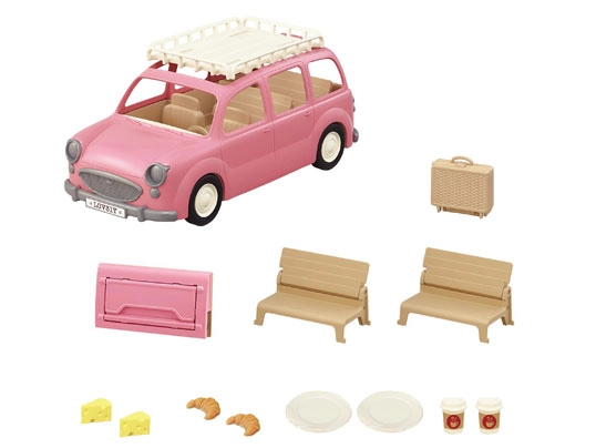 Odkryj urok wspólnych wycieczek z rodzinnym piknikowym vanem SYLVANIAN FAMILIES – przestronnym, różowym autem dla nawet 8 figurek. Oferuje składane tylne siedzenia, zdejmowaną pokrywę bagażnika jako stół, praktyczny bagażnik dachowy z koszem piknikowym, a nawet planszę do gry w klasy. Idealny do realistycznej zabawy i rodzinnych pikników na łonie natury.
