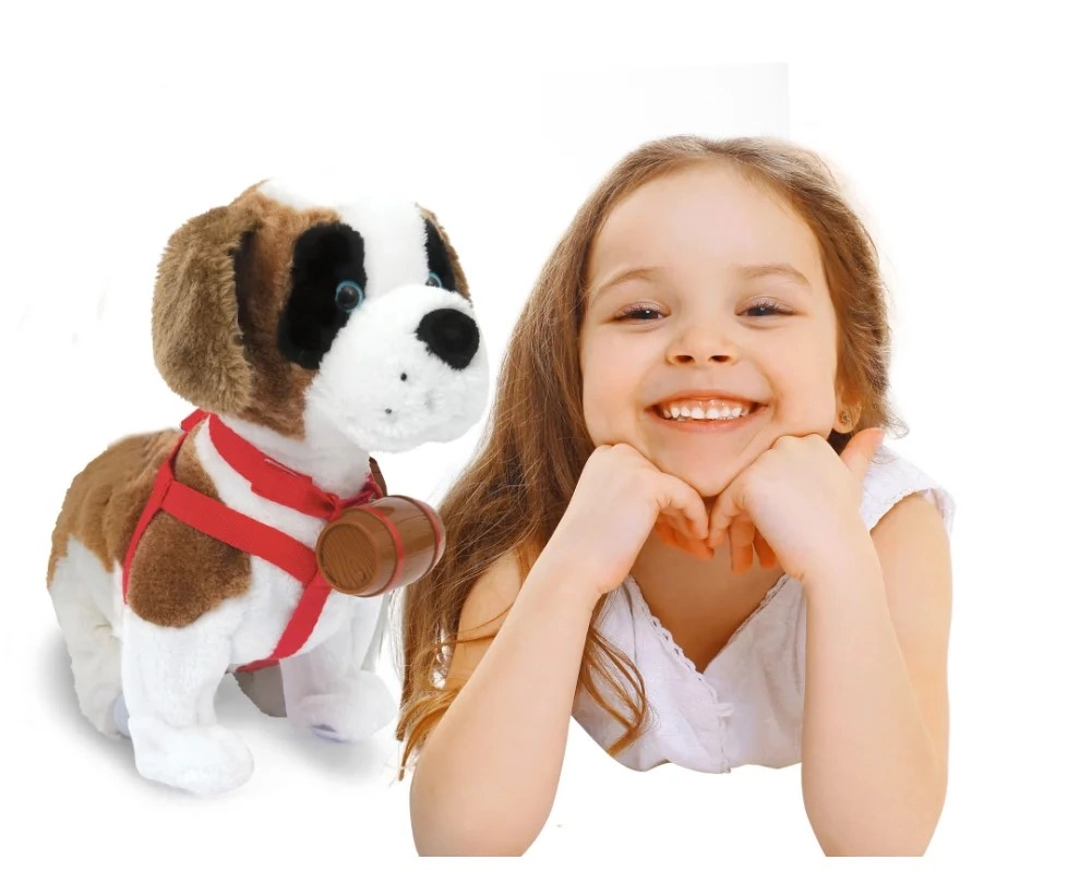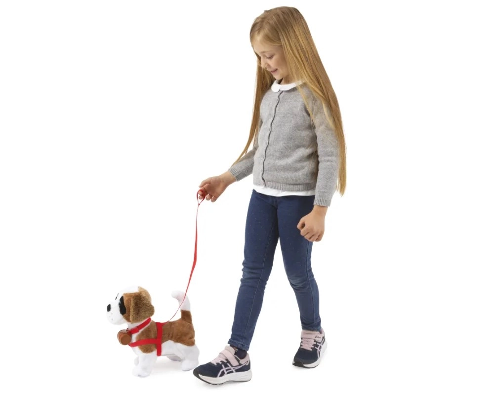 Interaktywny bernardyn Samby – chodzący pluszowy piesek na smyczy