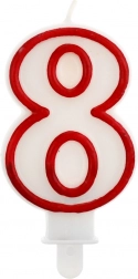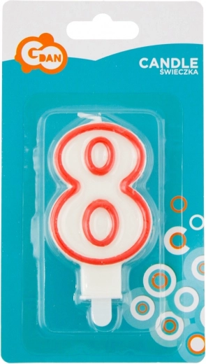 Ta biała świeczka z wyraźnym czerwonym obrysem to idealna ozdoba tortów urodzinowych i innych uroczystych okazji. Podkreśla liczbę lat i nadaje całej aranżacji elegancki, czysty wygląd.