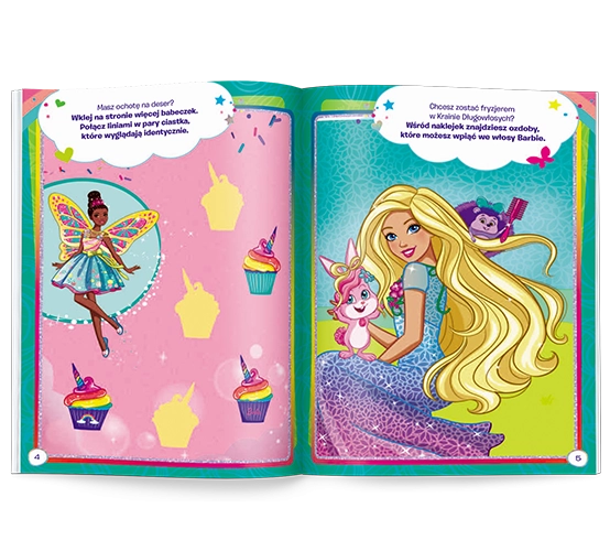 Wejdź do baśniowego świata BARBIE Dreamtopia, gdzie każda strona przynosi nowe przygody. Dzieci mogą tworzyć własne historie, ozdabiać sceny i rozwijać wyobraźnię z pomocą dwóch arkuszy naklejek z błyszczącym efektem. Zadania zostały zaprojektowane tak, aby odpowiadały możliwościom dzieci w wieku 4–7 lat – są zabawne, przejrzyste i motywujące.