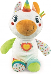 Uroczy interaktywny jednorożec marki BABY CLEMENTONI to mięciutka zabawka dla dzieci od 6 miesięcy, łącząca efekty świetlne, melodie i dźwięki wspierające rozwój zmysłów i małej motoryki. Dzięki różnorodnym fakturom, szeleszczącym elementom i łatwemu chwytaniu zachęca do samodzielnej zabawy. Praktyczną zaletą jest możliwość prania w pralce oraz baterie w zestawie.