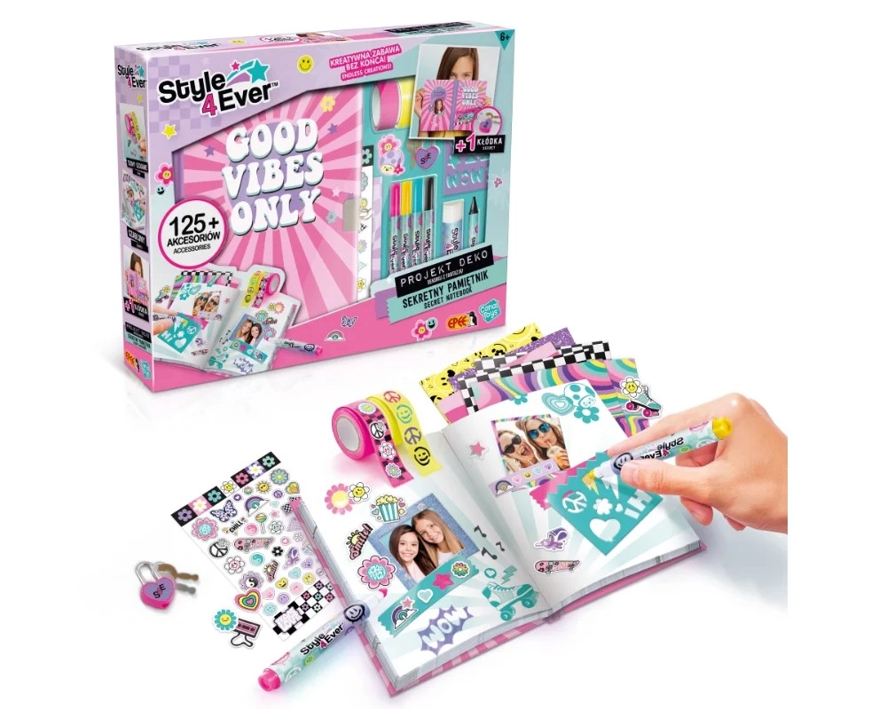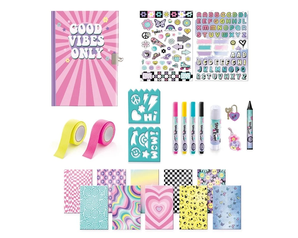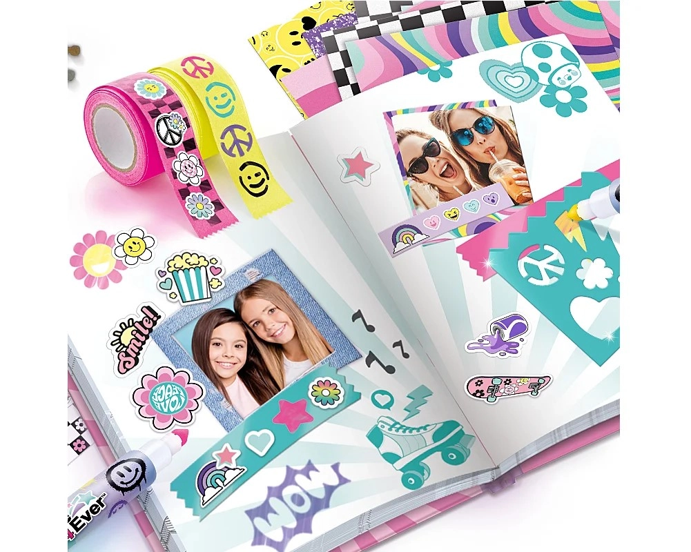 Z tym zestawem dzieci stworzą swój osobisty i bezpieczny dziennik dzięki zamkowi, który chroni ich myśli i wspomnienia. Bogate wyposażenie pobudza wyobraźnię i umożliwia niepowtarzalną personalizację – od kolorowych wzorów po oryginalne naklejki.